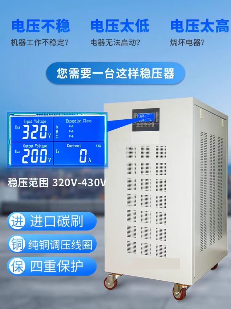 輸入穩(wěn)壓范圍常規(guī)三相304V-456V,單相176V-264V或?qū)挿秶貏e訂制頻率50HZ/60HZ輸出額定電壓相電壓220V,線(xiàn)電壓380V中心電壓7℅可調(diào)整......